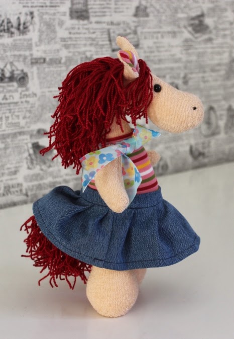 Внучка просила лошадку, "белую с фувалетовой гривой и хвостом", что бы куколы на ней катались....... Ну если белую с фувалетовой гривой я еще смогла бы делать, то кукол на ней точно не покатать. Я ломала голову, ломала, и тут, о чудо! Вижу в Икее довольно правдоподобную лошадь. Купила. Лошадь спасибо экономным китайцам стоять не могла, из-за ооочень слабой набивки. Но это пол-беды. Я ее надпорола, набила, зашила, и лошадка очень хорошая получилась. Но есть ложка дегтя..... То ли я плохо разбираюсь в породах лошадей, то ли китайцы(((( Хвост у лошади бобровый))))) Это такая ржака!!! Вчера хотела отрезать его нафиг и сделать из ниток (как у моих) но муж отговорил, потому, что такого цвета (как грива) ниток у меня нет, а другого цвета хвост еще не факт что лучше будет выглядеть. Вобщем пусть временно будет так нет ничего более постоянного, чем временное. Связала попонку, что бы куколкам удобнее было. Ну и вот, смотрите на чудо-чудное, диво-дивное)))